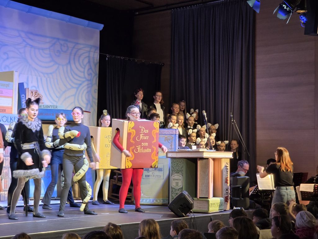Die Musikmittelschule Eggelsberg hat uns zum alljährlichen Musical eingeladen. Wir sind gerne gekommen und hatten vergnügliche Stunden. Dieses Jahr wurde das Stück „Das Büchergeheimnis“ aufgeführt, eine ausgezeichnete Vorführung mit eindrucksvollen Showeinlagen, schauspielerischem Können samt Chor und Band.